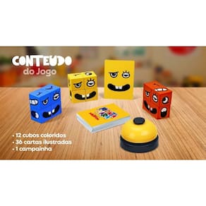 Contém: 12 cubos coloridos, 36 cartas e 1 campainha.
