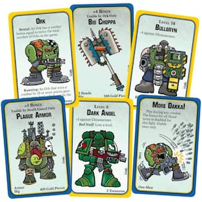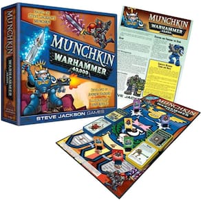 Munchkin Warhammer 40.000 - Dois jogos, Munchkin e Warhammer 40.000, combinam monstros e exércitos em uma batalha do futuro - Este é um jogo independente, mas também pode ser combinado com o resto da linha Munchkin - Para 3 a 6 jogadores, a partir de 10 anos - Aproximadamente 1 a 2 horas de tempo de jogo - Ilustrado pelo artista principal Munchkin (e fanboy extremo Warhammer 40.000) John Kovalic - Projetado pelo editor da Munchkin Line, Andrew Hackard, em consulta com a Games Workshop