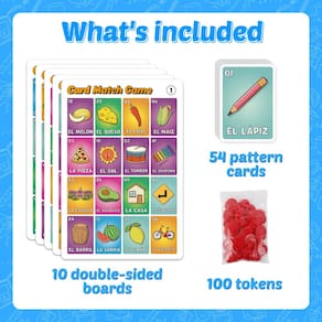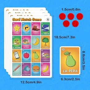 Jogo de tabuleiro - Conjunto completo de bingo mexicano da Loteria: este jogo de bingo envolvente inclui 100 fichas coloridas, 54 cartas lindamente ilustradas e 10 placas de bingo de dupla face. Projetado para crianças, este conjunto oferece infinitas oportunidades de diversão e aprendizado através do tradicional jogo Loteria. - Jogo clássico de bingo: aproveite a diversão atemporal do Bingo com um toque! Embaralhe as cartas, desenhe uma aleatoriamente e combine-a com as imagens no seu tabuleiro de bingo. Marque suas partidas com fichas e o primeiro jogador a completar uma linha ganha. Este jogo de bingo é fácil de aprender e emocionante de jogar. - Educacional e divertido: perfeito para atividades de aprendizagem pré-escolar, este jogo de bingo mexicano da Loteria ajuda as crianças a desenvolver habilidades de combinação, concentração e pensamento estratégico. É um excelente brinquedo educativo que torna o aprendizado agradável. - Aprenda espanhol através do jogo: cada carta apresenta imagens vibrantes e palavras em espanhol, tornando este jogo uma excelente ferramenta para aprender espanhol. As crianças se divertirão enquanto expandem seu vocabulário e habilidades de linguagem, o que o torna uma adição valiosa aos seus brinquedos educativos. - Jogo de correspondência simples e agradável: este conjunto de bingo oferece uma experiência de jogo de combinação simples e clássica que as crianças vão adorar. Com regras fáceis de seguir e jogabilidade emocionante, é perfeito para noites de jogos em família e diversão educacional, garantindo horas de diversão para as crianças.