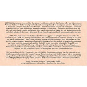 Rio Grande Games: Dominion Cornucopia & Guilds 2ª edição - jogo de tabuleiro de construção de deck de expansão, Time of The Harvest, idades 14+, 2-4 jogadores, 30 min - Expansão: esta caixa combina as expansões Dominion 5ª (Cornucópia) e 8ª (Guildas). Dominion: Cornucópia e Guildas não podem ser jogados sozinhos; para brincar com ele, você precisa das cartas básicas e do livro de regras (a Dominion oferece ambos). - Limitação do outono: chegou a estação dourada da colheita. Em "Dominion Cornucopia & Guilds", você testemunhará o ápice do progresso agrícola. A máxima "folhas de três, deixe estar" orienta suas escolhas enquanto você colhe as recompensas do seu trabalho. - Conucópia: a época da colheita! Os camponeses cuidaram dos arquivos e agora as festividades começam. - Design de jogo: Dominion Cornucopia & Guilds foi projetado por Donald X Vaccarino e pelo artista Jessi J.