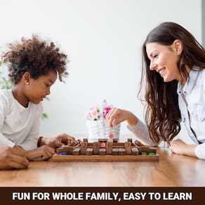 Shut-the-Box é um jogo tradicional de contagem, adição e probabilidade que remonta ao século 18, quando o jogo foi apreciado por pescadores normandos após um longo dia no mar. Hoje o jogo é jogado com a família, utilizado em salas de aula para ensinar adição e probabilidade, e é até mesmo um jogo de apostas jogado em pubs em toda a Europa! Role os dados e coloque qualquer combinação numérica de peças que correspondam ao seu rolo. Continue rolando até que você não consiga mais combinar com o seu rolo nos azulejos restantes. A pontuação mais baixa ganha o jogo. Se você colocar todos os azulejos, então você "fecha a caixa". Esta versão de quatro lados é feita de madeira de coloração média e longa duração com uma superfície de feltro para tocar. A caixa de madeira mede 30 x 30 x 5 cm. Possui 10 peças numéricas de madeira em vez dos nove números típicos de outras versões, trazendo mais combinações numéricas em jogo. Pode ser jogado com qualquer número de jogadores, mas o tabuleiro de 4 lados o torna ideal para quatro jogadores. Certamente trará horas de diversão e charme do velho mundo para sua casa. Um ótimo presente para crianças e adultos Este excelente conjunto de jogos de tabuleiro Shut The Box é um presente perfeito para crianças, famílias ou amigos. E esta é uma recreação divertida para passar momentos felizes com amigos e familiares. - ?Fácil e divertido para todas as idades? - O jogo de madeira ropoda Shut the Box (estilo vantageiro) é fácil de aprender e engraçado para crianças, adultos e famílias. Pode ser jogado com 2 a 4 jogadores e proporcionar horas de entretenimento divertido! - ?Ferramenta de aprendizado e jogo familiar? – Hoje em dia, o jogo Shut the Box tornou-se uma ferramenta para ensinar adições básicas na sala de aula enquanto também melhora as habilidades sociais básicas. Também é um excelente jogo de tabuleiro para a família. - ?Jogo tradicional de PUB? - O jogo Shut the Box Wooden era um jogo popular nos pubs de Manchester e ainda está sendo jogado em todo o mundo hoje. Este lindo jogo de fechar a caixa proporcionará horas de diversão onde quer que você vá. - ?Qualidade premium? – o jogo ropoda close the box é feito de madeira de pinho sólido e medindo 30,5 x 30,5 x 5 cm. Esta versão maior tem 10 azulejos de madeira com número de serigrafia que trazem mais combinações numéricas do que as versões de nove números. - ?Ajuda ao produto? - A satisfação do cliente é nossa primeira prioridade. Se você tiver alguma dúvida, sinta-se à vontade para entrar em contato conosco. Estamos muito dispostos a ajudá-lo.