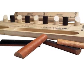 Jogo de Tabuleiro Senet em Madeira - Oficina de Criação Mitra Senet - Mitra Muito popular no antigo Egito, pode ser, possivelmente, um dos antepassados do Gamão. Uma das referências mais antigas de jogos. No antigo Egito, pode ter adquirido uma qualidade mágica ou mística tornando-se algo como um ritual dentro de si mesmo. Acreditava-se que, após a morte, era preciso vencer uma partida de Senet contra o Deus Rá para poder entrar no paraíso e, talvez por isso, tenha passado a ser conhecido como o Jogo de passagem da alma para outro mundo. Ref: MR04 Clássica e especial linha de jogos de Tabuleiro de MADEIRA. Excelente Acabamento Embalagem: o próprio tabuleiro senet serve como estojo, para guardar o produto após o uso. Jogadores: 2 participantes. Material: mdf / madeira. Acompanha regras do jogo, super detalhadas e ilustrativas. Estimula o raciocínio, memória, e inteligência. Medidas do Tabuleiro Aberto: 26x42x1,5 cm. Medidas do Tabuleiro Fechado: 26x21x3 cm. Idade: a partir de 9 anos. INMETRO CE-BRI/TUV-0017512.0 NM 300/2002