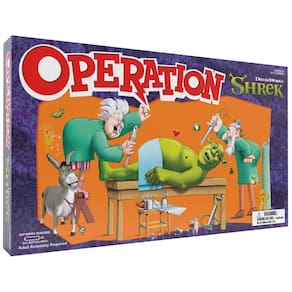 Operação: jogo de tabuleiro Shrek, com 12 peças personalizadas Shrek "Funatomy" de Pixie Bites a Pain in The Butt Donkey, clássico eletrônico remove os objetos ou obtenha o jogo Buzzer, oficialmente - Ajude Shrek a se recuperar de sua "Pain in the Butt - Donkey" e outras doenças neste toque hilário no clássico jogo de operação! - Extraia 12 peças personalizadas "Funatomy" da Shrek, mas tenha cuidado — um movimento errado e ele rugirá! - Firme suas mãos enquanto remove peças como "Frog in the Throat" sem acionar o nariz vermelho e a campainha de Shrek. - Inclui bandeja de jogo com tema Shrek, pinças, 12 peças "Funatomy", cartões médicos, cartas especializadas e dinheiro Shrek. - Desfrute de uma noite de jogo divertida com 1 ou mais jogadores, trazendo o mundo mágico de Shrek para sua mesa!