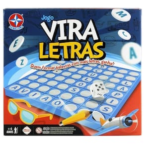 Conteúdo da embalagem: 64 Discos de letras (7 A - 6 O,E - 5 I - 4 S,U - 3 L,R - 2 B,C,D,M,N,P,T,V - 1 F,G,H,J,K,Qu,W,X,Y,Z.