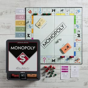 WS Game Company Jogo de tabuleiro Monopoly Nostalgia Edition em lata colecionável - – Experimente o Monopoly como era em 1937, com gráficos de inspiração vintage, casas e hotéis de madeira clássicos e um tabuleiro de tamanho normal, tudo embalado em uma bela lata colecionável. - Seja você um fã de longa data ou apresentando uma nova geração ao jogo de tabuleiro mais popular do mundo, esta edição é um presente fantástico para aniversários, feriados e colecionadores. - , , – Monopoly é o melhor jogo de compra, troca e negociação, reunindo amigos e familiares para horas de entretenimento. - – Edição Monopoly Nostalgia faz parte da série de estanho colecionável WS Game Company que inclui 8 jogos clássicos em caixas de lata resistentes com belas obras de arte retrô. Colecione todos! - Esta edição vem com tudo o que você precisa para jogar, incluindo um tabuleiro dobrável estilo vintage, 8 fichas clássicas de estanho: Navio de guerra, bota, canhão, cavalo e cavaleiro, ferro, carro de corrida, cachorro escocês, dedal e cartola; 2, marfim Dados coloridos, uma bandeja de banqueiro embutida, dinheiro monopolista e cartas de Chance, Community Chest e Title Deed Cards de estilo vintage. - O jogo vem em uma lata de metal resistente para armazenamento seguro e fácil transporte, garantindo que permaneça uma lembrança apreciada por muitos anos. Mede 26,6 x 26,6 x 6 cm, pesa cerca de 1 kg. - Seja jogando por nostalgia ou aprendendo o jogo pela primeira vez, Monopoly Nostalgia Edition oferece diversão imobiliária clássica para todas as idades. - Ideal para 2 a 8 jogadores, Monopoly é o jogo perfeito para jogos competitivos, tomada de decisão estratégica e momentos inesquecíveis. - Projetado em Massachusetts e feito com materiais de alta qualidade, este jogo é oficialmente licenciado pela Hasbro, garantindo autenticidade e durabilidade. - Para 2 a 8 jogadores, a partir de 8 anos