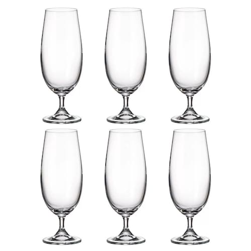 Design moderno e arrojado, o jogo de taças para cerveja é indispensável para a composição de uma mesa com elegância e modernidade. Ideal para momentos de comemoração com a sua família e amigos. As taças em Titânio Bohemia são feitas com tecnologia inovadora que garante 60% a mais de resistência, portanto, suportam inúmeras situações em que as taças de cristal comuns não resistem. Acompanha 6 peças com 380ml de capacidade cada.