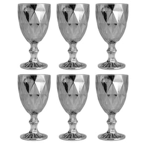 Jogo de taças 6 pçs 325ml em vidro diamond lyor cinza metal