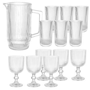 Composição: - 6 Taças: 16cm de altura x 8,5cm de diâmetro Capacidade: 370mL - 6 Copos: 13cm de altura x 8cm de diâmetro Capacidade: 420mL - 1 Jarra: 20cm de altura x 9cm de diâmetro da base x 12,5cm de largura no topo Capacidade: 1200mL