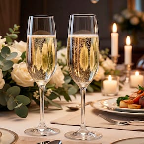 O Jogo de Taças de Champanhe são produzidas em Cristal com Titânio, perfeitas para apreciar seu champanhe em momentos especiais com sua família e amigos. Por serem de cristal, as taças são finas, delicadas e apresentam mais brilho e transparência que as taças de vidro.