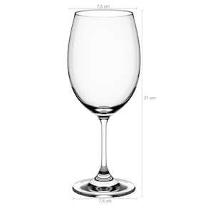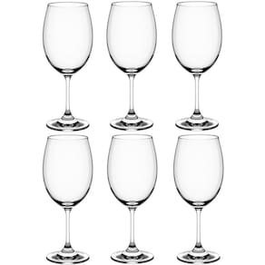 Jogo de Taças de Vinho Cristal 6 Peças Taças Para Vinho 450ml Transparente Sense.#Ideal Para Saborear Bebidas#Jogo 6 Taças De Vinho#Linha SenseGarantia: 90 Dias / Peso: 1,08kg / Cor: Transparente / Ref: 56313104X6Dimensões: 7,5cm (C) x 7,5cm (L) x 21cm (A);Diâmetro superior da taça: 6,2cm;Diâmetro da base da taça: 7,5cm;Espessura: 2mm;Capacidade: 450ml;Conteúdo: 6 taças de vinho tinto.Cuidados: - Manuseie com cuidado, evitando impactos;- Para prolongar a beleza de suas taças, lave-os com esponja macia e sabão ou detergente neutro. Enxágue bem com água morna e seque em seguida com um pano macio sem deixar fiapos;- Não use produtos abrasivos como palha de aço, pois eles podem riscar e danificar as taças. Ao lavar, separe as taças de outras louças como: pratos, panelas e talheres;- Nunca armazene as taças com o bojo virado para baixo, em contato com a superfície, exceto se estiverem em um rack com base ventilada. Caso contrário, corre-se o risco de acúmulo de odores nas taças;- Pode ir à lava-louçasMaterial: - Cristal.O jogo de taças de vinho é perfeito para receber pessoas e saborear um bom vinho em momentos especiais. As taças do conjunto de taças para vinho apresenta design com alto brilho e transparência, perfeito para harmonizar com seus pratos preferidos. Uma bela refeição em ocasiões simples se tornam ainda mais especiais quando combinadas com o jogo de taças para vinho cristal 6 peças.
