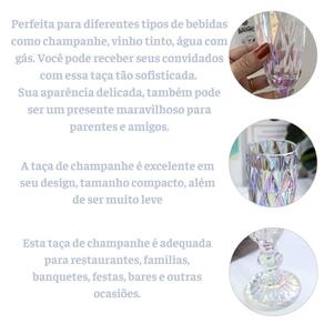 O Jogo de taças de vidro é uma explosão de elegância e cor. Cada taça é habilmente trabalhada com um acabamento furta-cor, proporcionando uma variedade de tonalidades que dançam com a luz. Essa característica única adiciona um toque de magia visual a cada gole. Transformando seus momentos especiais em experiências inesquecíveis com nosso deslumbrante Jogo de Taças de Vidro Furta-Cor. Este conjunto exclusivo, composto por seis taças encantadoras, combina funcionalidade e estilo de maneira extraordinária. Seja para celebrar conquistas, momentos íntimos a dois ou encontros festivos, o Jogo de Taças de Vidro Furta-Cor adiciona um toque de glamour a qualquer evento. Surpreenda seus convidados e eleve sua experiência de degustação com este conjunto único.