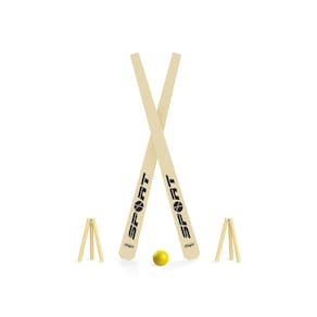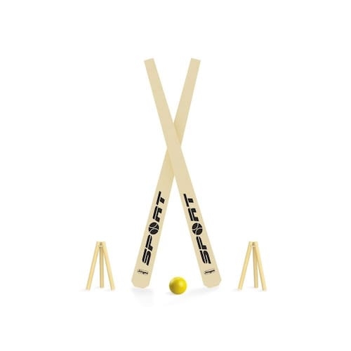 Jogo de Tacos / Bets Sport da Junges com 2 tacos 76x6cm em madeira de reflorestamento (MDF) 15mm, 2 casinhas e 1 bolinha de borracha nº 3. Impressão em serigrafia. Acompanha instruções com regras do jogo de tacos / bets.