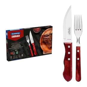Jogo De Talheres 12 Peças Tramontina Churrasco 21199796 Vermelho Especificações Cor: Aço Inox e VermelhoMaterial: Aço Inox e Madeira PolywoodGarantia: 5 anos junto ao fabricanteReferência: 21199796Pegador / Cabo: Madeira Tratada PolywoodTratamento do Talher: Tratamento TérmicoPode ir à Maquina de Lavar Louças?: Sim
