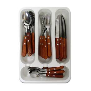 Este moderno e completo Conjunto De Talheres Martinazzo, oossui peças feitas em aço inoxidável resistente e duradouro. Além disso, possuem cabos em madeira para deixar sua mesa mais charmosa. Com este prático conjunto de talheres servir seus convidados ficará muito mais fácil e prazeroso.