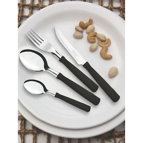 - Garfos e colheres que garantem maior resistência devido a espessura do aço e a estampagem das lâminas.