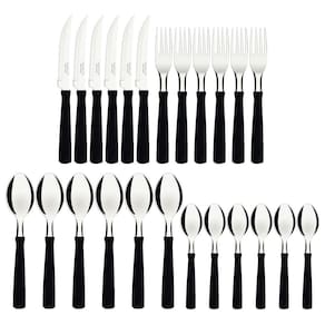 As facas possuem tratamento térmico em suas lâminas, assim fornecem resistência e durabilidade ao fio de corte. O melhor de tudo é que você pode levar as peças ao lava-louças sem que isso prejudique as características dos talheres.