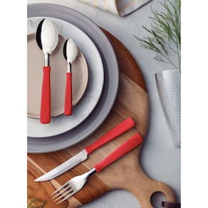 - Garfos e colheres que garantem maior resistência devido a espessura do aço e a estampagem das lâminas.