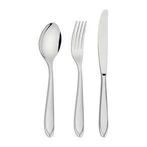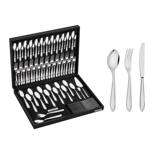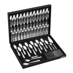 O que vem na caixa: 12 Colheres mesa 12 Colheres média 12 Colheres para café 12 Facas mesa 12 Garfos mesa 12 Garfos para torta 2 Talheres para salada 1 Pá para açúcar 1 Pá para bolo 1 Estojo Madeira