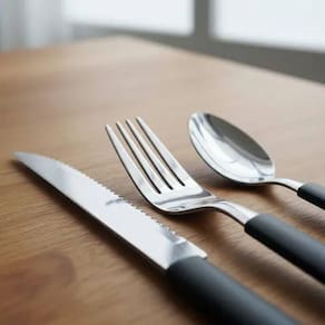 Variedade de talheres: facas, garfos e colheres para diferentes pratos.