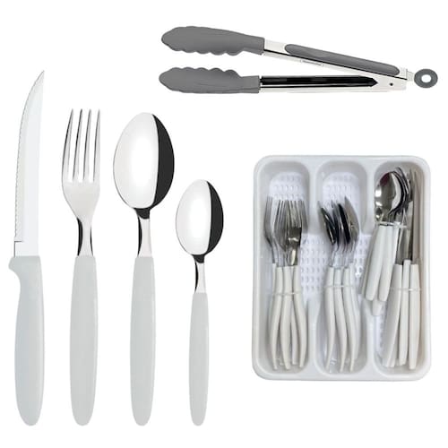 Tipo de produto: faqueiro com 24 pecas + porta talher+ pegador