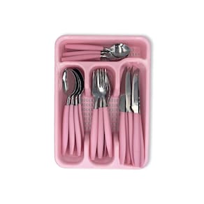 O nosso porta talheres de gaveta é ideal para você, um produto que alinha organização a modernidade. Além de contar com um design sofisticado de inox seus cabos são produzidos com polipropileno proporcionando maior durabilidade e controle durante o manuseio. Junto com as 24 peças de talheres que são compostos por 6 facas, 6 garfos, 6 colheres e 6 colheres de chá, o nosso jogo vem com um porta talher de gaveta que além de manter sua gaveta ou balcão organizado também é versátil ao servir como um escorredor dos talheres, um jogo completo. Suas dimensões são: Facas: Comprimento 22,2 cmGarfo: Comprimento 20,1 cmColher De Mesa: Comprimento 19,5 cmColher De Sobremesa: Comprimento 15 cm