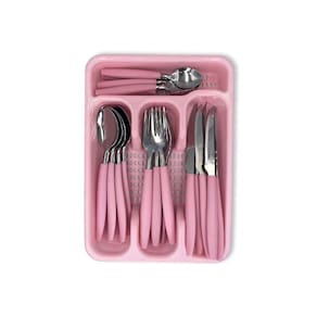 Material dos Talheres: Aço Inox com cabos em dos Cabos: Rosa.