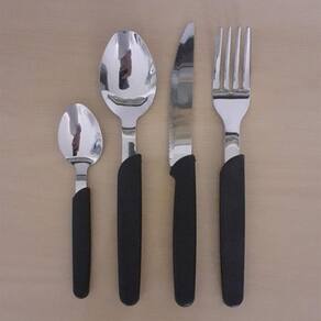 Conjunto de Talheres em aço inox com cabo plástico na cor preta de excelente qualidade. Decore sua mesa de jantar com estilo e sofisticação do este jogo de talheres