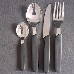 Conjunto de Talheres em aço inox com cabo plástico na cor preta de excelente qualidade. Decore sua mesa de jantar com estilo e sofisticação do este jogo de talheres