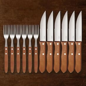 O Conjunto para Churrasco Garfo e Faca 36 Peças Mor é excelente para fazer parte do seu almoço de domingo reunindo a família e os amigos. Unindo estilo e design, são produzidos em aço inox com cabo em madeira. Extremamente duráveis, podem ir à lava-louças e permanecem bonitos por muito mais tempo. Diferenciada, a faca de serra possui lâmina mais larga e cabo mais robusto que as facas de modelo tradicional, garantindo o manuseio firme e corte preciso até mesmo nos maiores pedaços de carne.