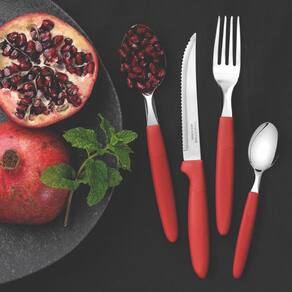 - Garfos e colheres que garantem maior resistência devido a espessura do aço e a estampagem das lâminas.