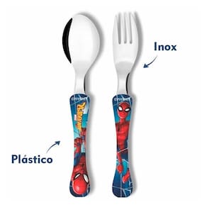 As refeições da criançada vão ficar mais divertidas com o Jogo de Talheres Do Homem Aranha Um garfinho e uma colher de inox com estampa de super-herói são super aliados na alimentação dos pequenos. Torne a hora de comer mais divertida