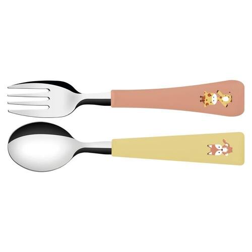 Jogo de Talheres Infantil Tramontina Baby Friends com Lâminas de Aço Inox e Cabos de Polipropileno Colorido 02 Peças