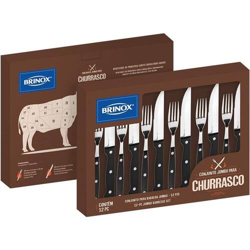 Jogo de Talheres para Churrasco Brinox Jumbo 12 Peças