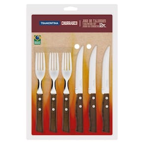 O seu churrasco ficará ainda mais completo com o Jogo de Talheres para Churrasco Tramontina em Aço Inox com Cabo de Madeira Natural 12 Peças da linha Churrasco. Com peças pensadas especialmente para esse ritual tão saboroso, o jogo conta com facas e garfos com lâminas em aço inox, sendo altamente durável. Além disso, possui cabos em madeira natural. As facas irão garantir aquele corte perfeito, permitindo apreciar ainda mais a carne, ou seja, o seu churrasco será um sucesso.