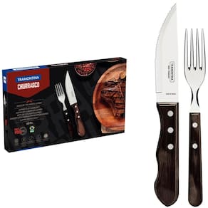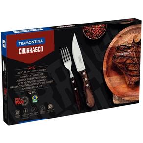 Jogo de Talheres para Churrasco Jumbo Tramontina 12 Peças em Aço Inox Cabo Castanho Polywood.