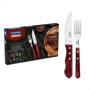 - Para todo bom churrasqueiro tornar o seu churrasco ainda melhor a dica é: Jogo de Talheres para Churrasco Jumbo Tramontina em Aço Inox com Cabo Vermelho Polywood 12 Peças.