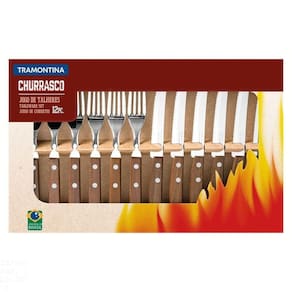 Você irá ser reconhecido como o melhor anfitrião e melhor churrasqueiro ao oferecer para os seus convidados o Jogo de Talheres para Churrasco Tramontina em Aço Inox com Cabo de Madeira Natural 12 Peças da linha Churrasco. O jogo conta com facas e garfos com lâminas em aço inox, sendo durável. Além disso, possui cabos em madeira natural com rebites de alumínio. Com esse jogo todos irão querer o seu churrasco de domingo.