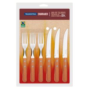 Jogo de Talheres Tramontina Churrasco 12 Peças Dynamic em Aço Inox e Madeira Natural.
