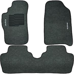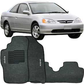 Especificações - Carpete agulhado de 05 mm em fibra de PET e resina sintética. - Acabamento em viés preto - Sistema de segurança aderente - Base resinada. - Bordado com a i d e n t i f i c a ç ã o do veículo - Modelagem específica