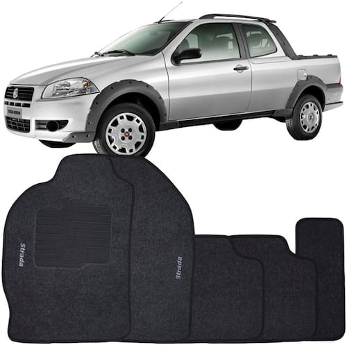 Especificações - Carpete agulhado de 05 mm em fibra de PET e resina sintética. - Acabamento em viés preto - Sistema de segurança aderente - Base resinada. - Bordado com a identificação do veículo - Durabilidade - Modelagem específica - Fácil adaptação e instalação