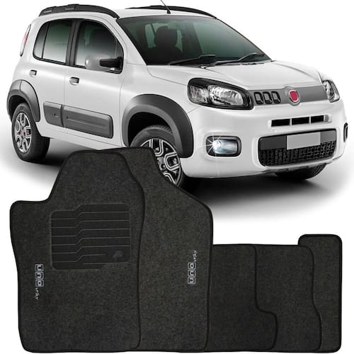 Jogo de Tapete Automotivo Carpete Fiat Uno Way 2011 à 2018 Soft Logo Bordado Grafite 5 Peças