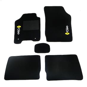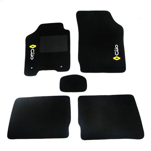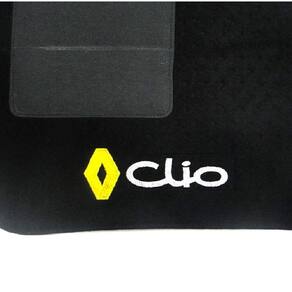 Jogo de Tapete Automotivo Clio Carpete Com a Base Pinada Jogo de tapete linha elithe carpete com espessura de 5mm na cor preta com base antiderrapante em pvc pinado. Bordado com a grafia e nome, lavável. Jogo com 5 peças.