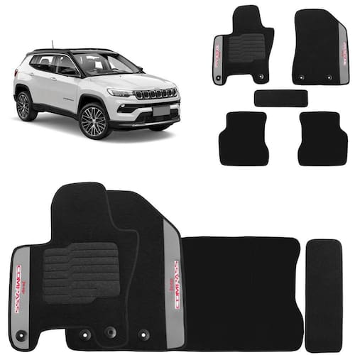 Jogo de Tapete Carpete Compass 2016 a 2024 Preto 5 Peças