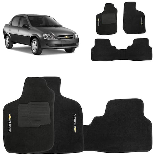 Jogo de Tapete Carpete Corsa Classic 2003 a 2016 Preto 3 Peças