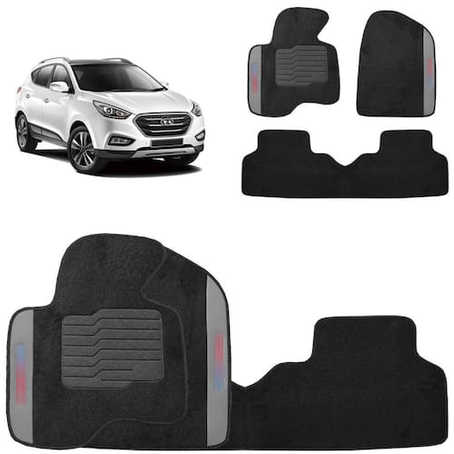 Fabricado em carpete automotivo, material já conhecido pela excelente qualidade e resistência. Além da sua base emborrachada para proporcionar uma melhor fixação no assoalho do veículo.