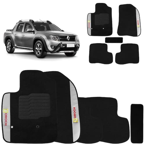 Fabricado em carpete automotivo, material já conhecido pela excelente qualidade e resistência. Além da sua base emborrachada para proporcionar uma melhor fixação no assoalho do veículo.