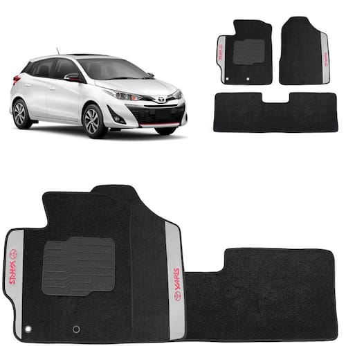 Fabricado em carpete automotivo, material já conhecido pela excelente qualidade e resistência. Além da sua base emborrachada para proporcionar uma melhor fixação no assoalho do veículo.