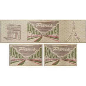 Jogo De Tapetes Cozinha Sisal RayzaEstampa ParisJogo composto por 3 peças, sendo 2 Tapetes 041 x 060 + 1 Passadeira 041 x 160.Novidade: BORDA DOBRADA, não levanta as pontas.Base antiderrapante.Lavável, não mancha.