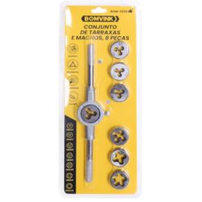 Produto: Jogo de tarraxa M3 a M12 com 8 peças - BOM-3230 Marca: Bomvink Descrição: O Jogo de tarraxa M3 a M12 com 8 peças BOM-3230 da Bomvink é sua solução definitiva para rosqueamento manual com precisão e eficiência. Ideal para profissionais da mecânica, metalurgia e hobistas exigentes, este kit oferece a robustez e a precisão que você necessita para seus projetos.