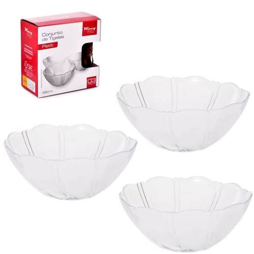 Jogo de tigela de vidro sobremesa petit com 3 pecas 350ml Jogo de tigela de vidro redonda para sobremesa petit com 3 pecas 350ml 12,5cmo na caixa - wincy